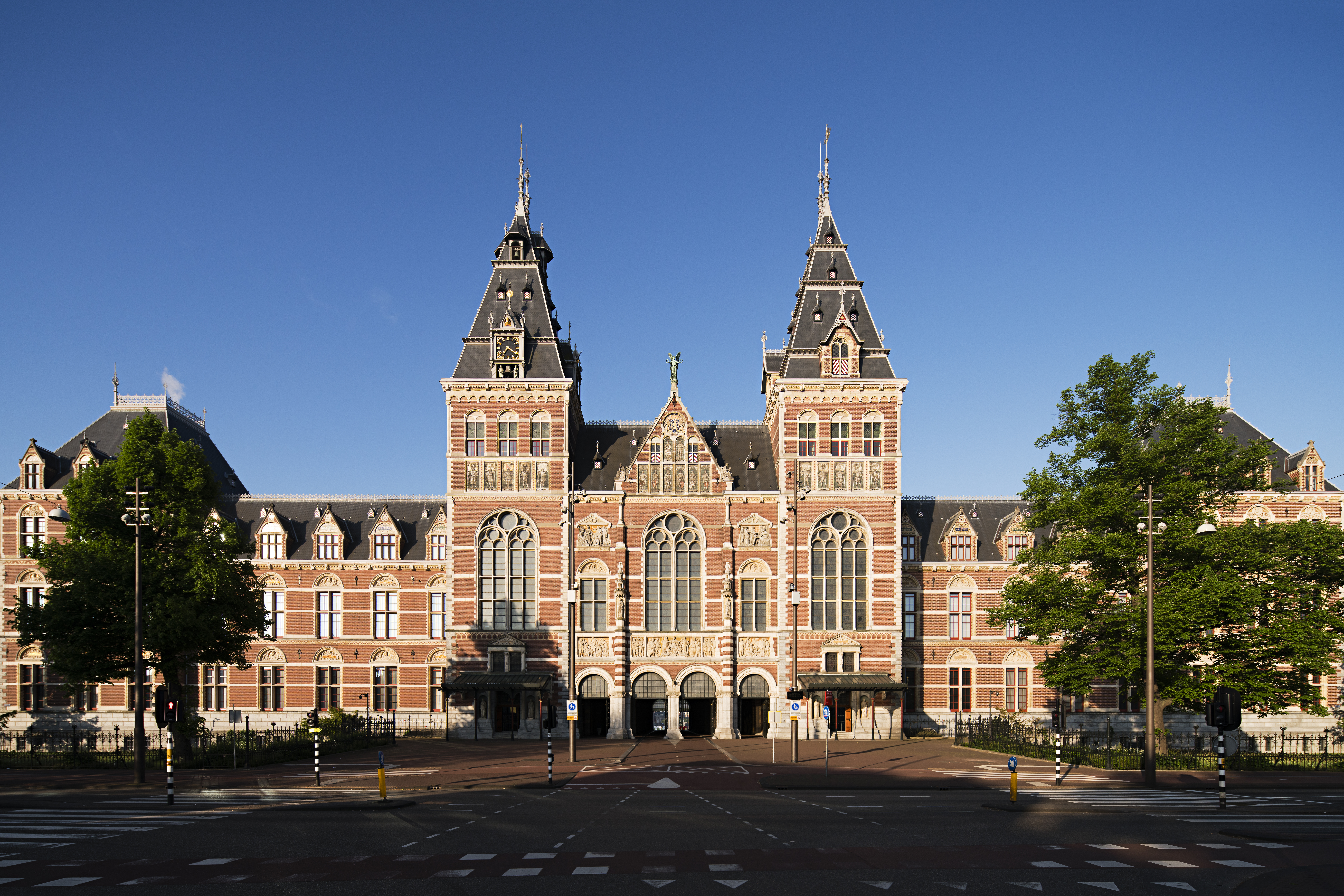 Facade-Rijksmuseum-Blue-Sky-with-trees-Roel-Baeckaert-Rechtenvrij